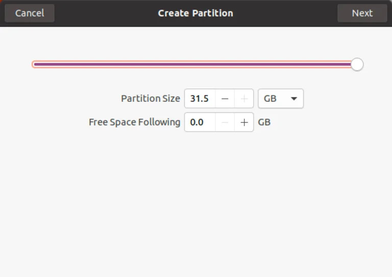 برای اینکه پارتیشن جدید برای استفاده اوبونتو مناسب باشد، باید یک فایل‌سیستم روی آن ایجاد شود. نوع فایل‌سیستم توصیه شده برای نسخه فعلی اوبونتو XFS است ایجاد فایل‌سیستم با استفاده از فرمان mkfs.xfs به شرح زیر انجام می‌شود (در صورت لزوم نصب بسته xfsprogs):