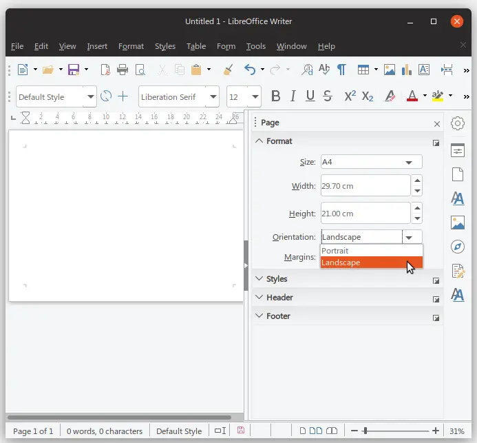 نحوه افقی یا عمودی کردن صفحه در لیبره آفیس رایتر
