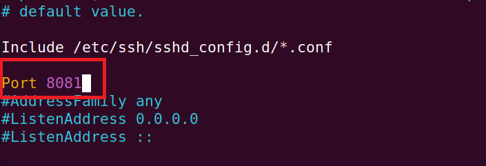 پورت به طور پیشفرض روی ۲۲ تنظیم شده است. اگر میخواهید تنظیمات پیشفرض را تغییر دهید، نظرات را حذف کرده و پورت مورد نظر خود را وارد کنید. توصیه میشود از پورت ۲۲ استفاده نکنید زیرا هر کسی که سعی در نفوذ به سیستم شما دارد، به احتمال زیاد ابتدا پورت ۲۲ را برای آسیبپذیریها بررسی میکند.